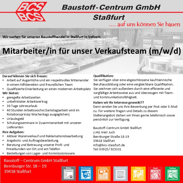 Ihr Team vom Baustoff – Centrum GmbH Staßfurt